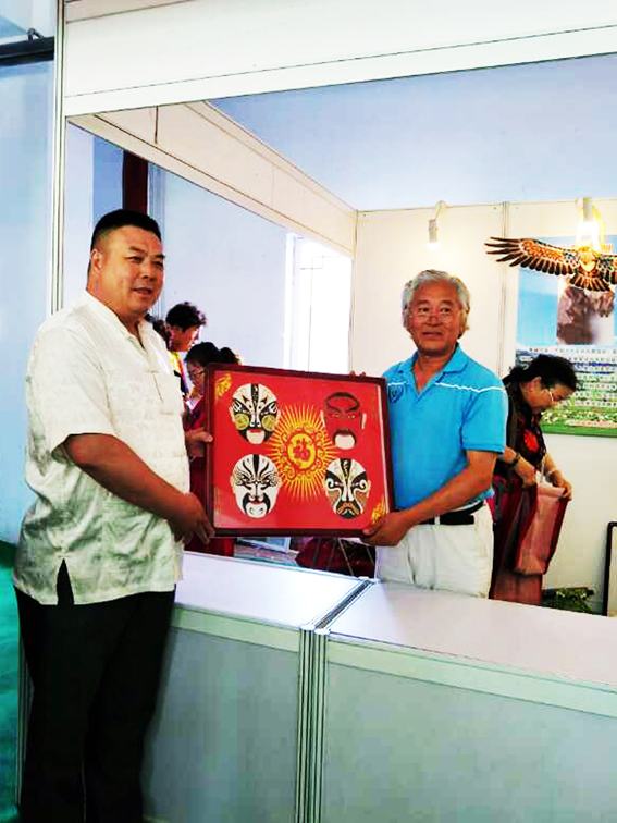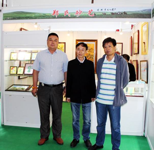 鄭總與河北省文聯(lián)組聯(lián)絡(luò)處處長張占芳、河北省文聯(lián)機(jī)關(guān)黨委書記常立青在烏蘭察布市首屆京津冀蒙民族民間藝術(shù)博覽會(huì)展位前合影