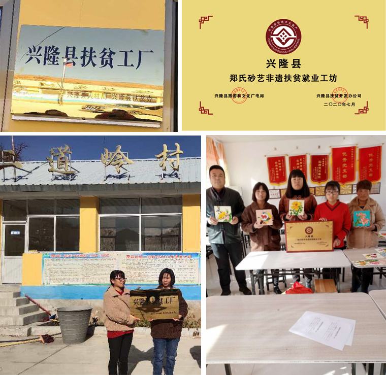 2020年11月6日。由興隆縣人力資源和社會保障局、縣扶貧辦頒發(fā)的“興隆縣扶貧工廠”、興隆縣旅游和文化廣電局、興隆縣扶貧開發(fā)辦公室,頒發(fā)的“興隆縣鄭氏砂藝非遺扶貧就業(yè)工坊”,在蘑菇峪鎮(zhèn)二道嶺村正式掛牌營業(yè)。標(biāo)志著該村扶貧就業(yè)工坊步入正規(guī)化、規(guī)范化軌道。興隆縣就業(yè)局張新主任、鄭氏砂藝文化有限公司董事長鄭鐵軍、蘑菇峪鎮(zhèn)包村干部以及村干部等出席掛牌儀式。