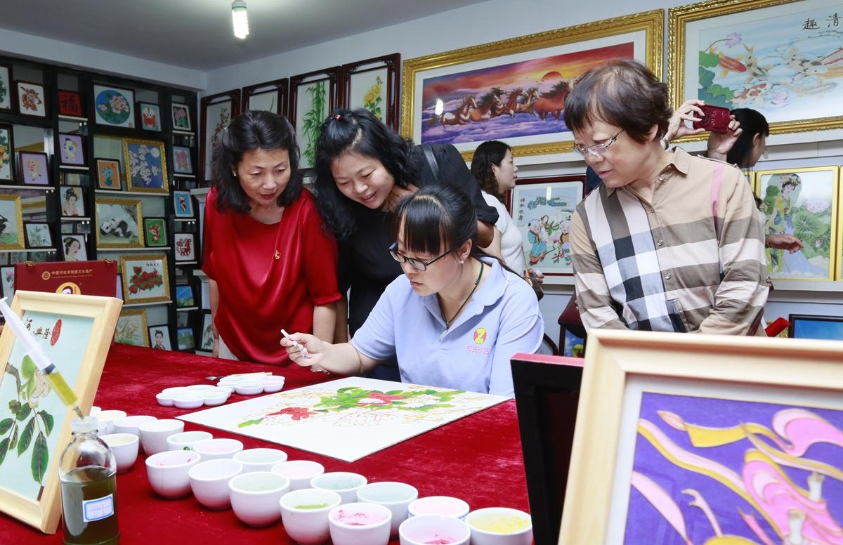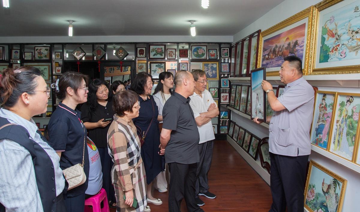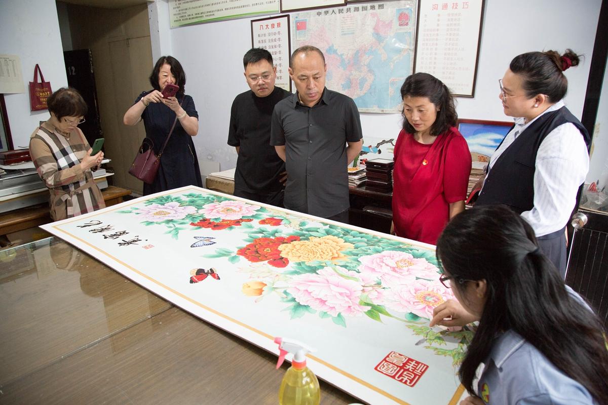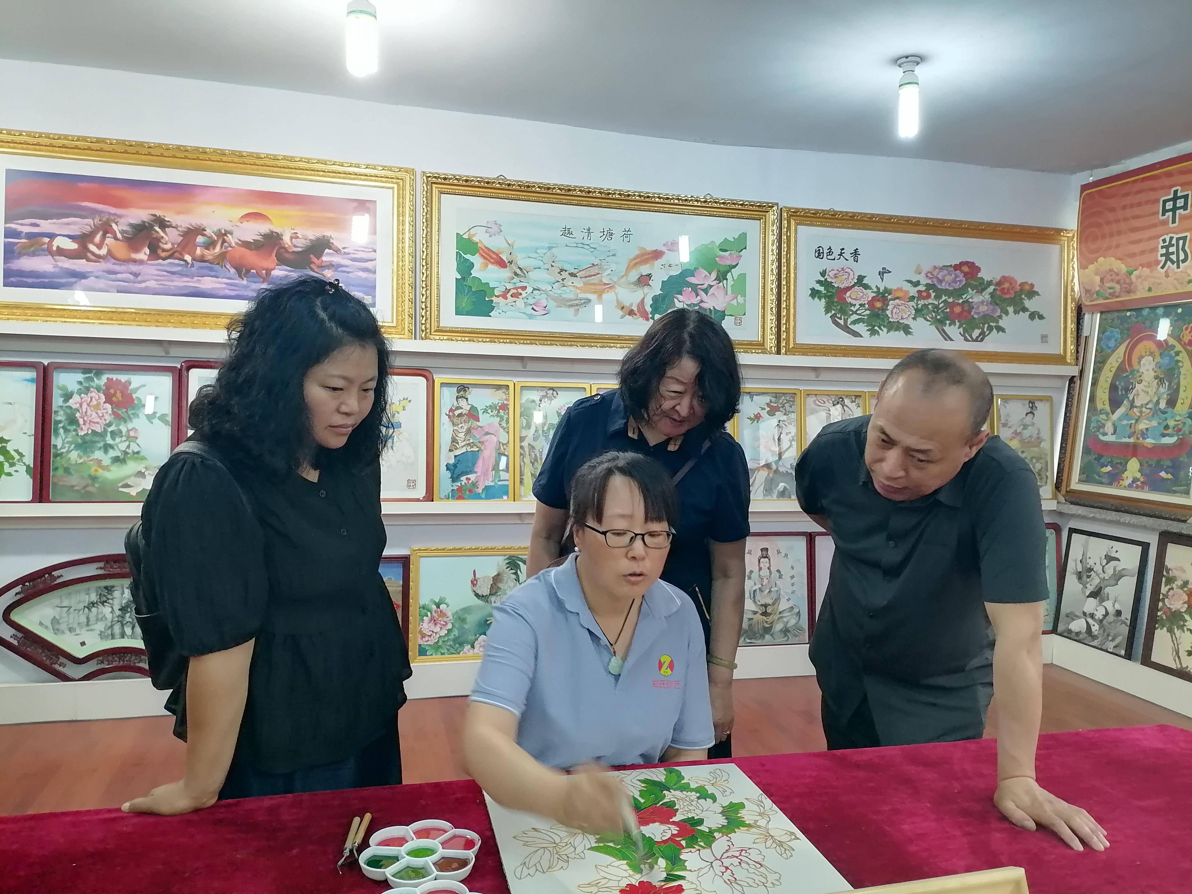 在鄭氏砂藝總經理鄭鐵軍的引領下,參觀人員先后參觀了鄭氏砂藝非遺傳承基地和創新研發車間等工作場所,鄭總詳細介紹了公司發展歷程、非遺傳承成果及黨建引領經驗,強調黨紀要求如何融入企業管理黨員參觀了公司展覽館,欣賞了各類砂畫作品,感受非遺魅力。